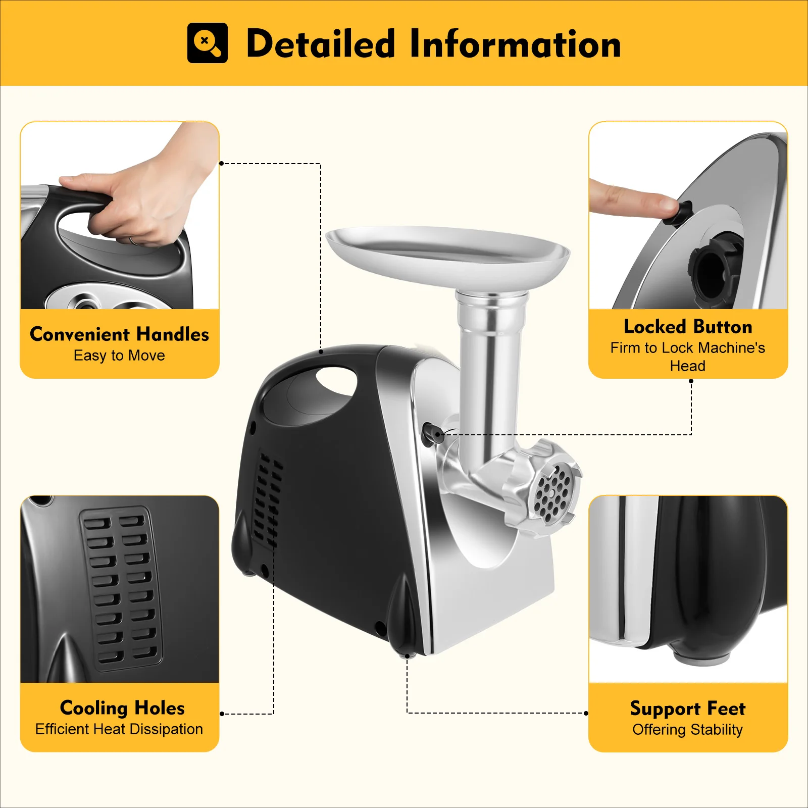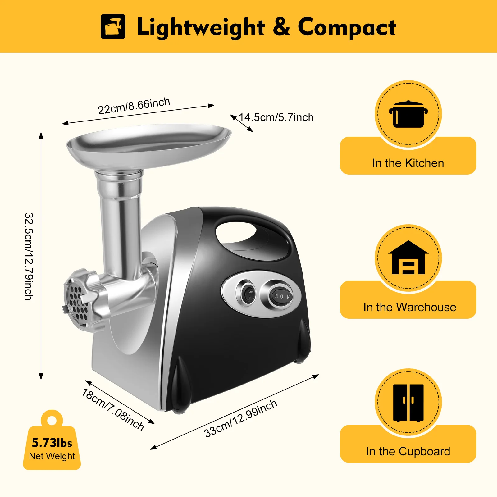 - Potenza e Velocità: Grazie ai 2800W di potenza, potrai macinare carne rapidamente senza perdere qualità.